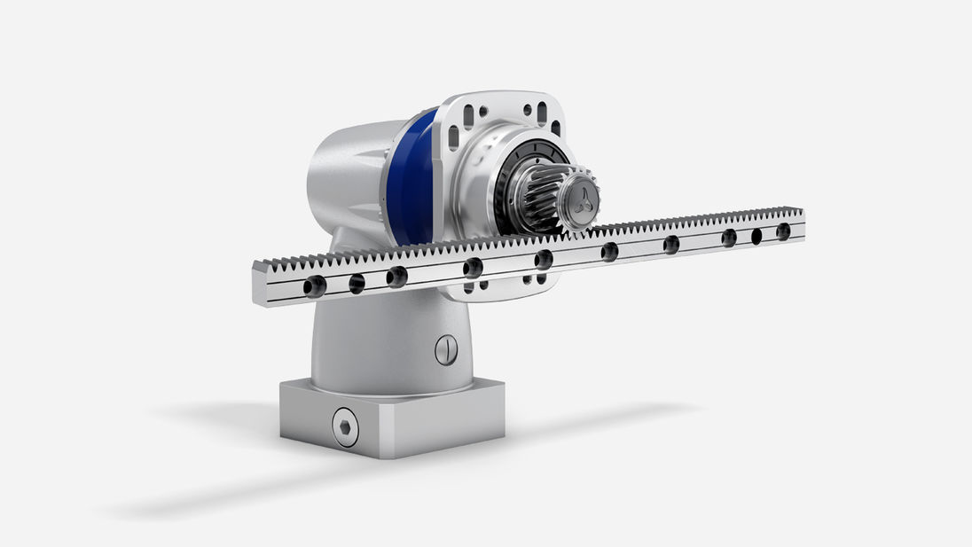带有长圆安装孔的 XPC+ 正交伞齿齿轮箱和创新型齿条 INIRA® 的精密型线性系统